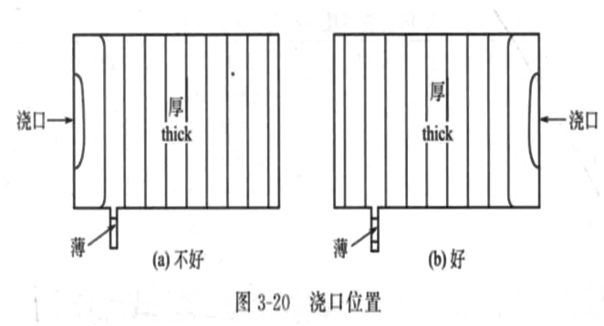 進膠點應(yīng)該從肉厚的區(qū)域向肉薄的區(qū)域進膠,這樣的話將肉厚的區(qū)域充填完成后,自動充填肉薄的區(qū)域,