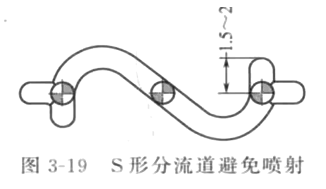 S型流道進膠,有效解決了進膠點流痕的問題,而且已避免了進膠口附近產(chǎn)生噴射紋的現(xiàn)象。