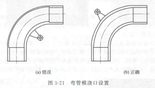 如圖所示,彎管形狀的產(chǎn)品,需要從彎管側(cè)面進膠,有效解決了進膠阻力的問題,并且有效解決了注射壓力的分解,型芯沒有產(chǎn)生偏移,整體的注塑肉厚也比較均勻。