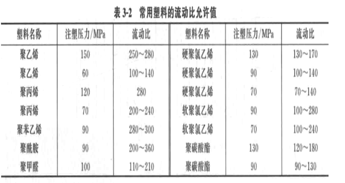常用塑料的流動比值: